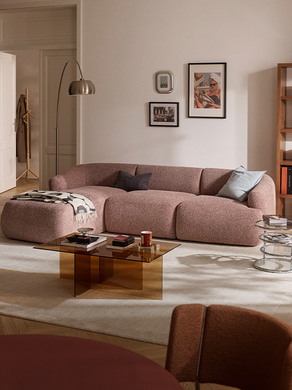 SOFIA is a stylish modular sofa that adapts to your needs. Whether it’s a chic two-seater or a spacious lounge area – thanks to the clever click system, it can be easily extended.