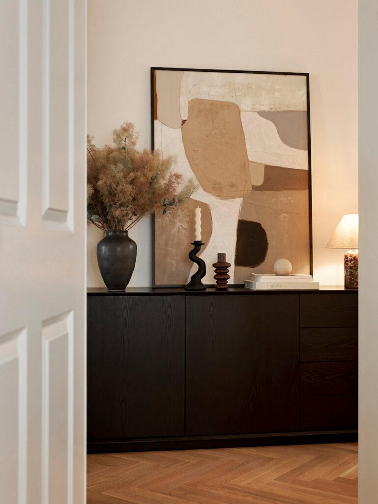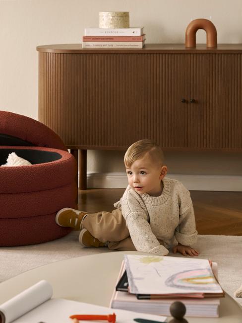 Du hast ein eher kleines Wohnzimmer und fragst Dich, wie Du hier mehr Gemütlichkeit schaffen kannst? Ganz einfach: Sorge für ein aufgeräumtes, ordentliches Raumbild. Dabei sind blickdichte Aufbewahrungsmöglichkeiten wie Sideboards oder Kommoden, aber auch Poufs und Hocker mit Stauraum Deine Helden des Alltags. Dazu kommt weiterer Stauraum in Form von Körben oder Boxen, in denen Du Kleinigkeiten verstauen kannst. Dein offenes Regal darfst Du aber natürlich gerne behalten: Dieses dient als Platz für schöne Deko!
