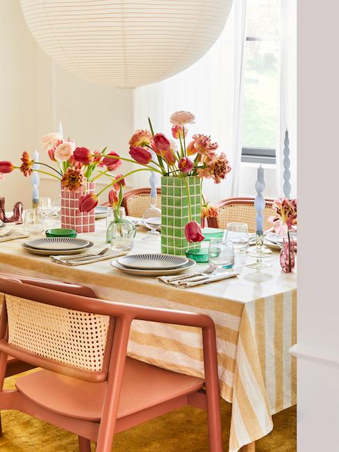 Der Frühling ist die perfekte Zeit, um Deinen Esstisch mit fröhlicher Deko noch mehr zum Strahlen zu bringen! Setze auf bunte Blumensträuße in schönen Vasen, die das Zentrum Deiner Tischdeko bilden, oder verwende kleine Vasen mit einzelnen Blüten für einen verspielten Look. Ergänze das Ganze mit eleganten Teller- und Glas-Arrangements und bringe mit dekorativen Kerzenständern oder Windlichtern Gemütlichkeit ins Spiel. Kombiniere kreative Details wie handgeschriebene Namenskarten oder kleine Osterfiguren, um Deinen Tisch besonders persönlich zu gestalten. So wird jede Mahlzeit im Frühling zu einem Fest.