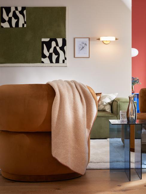 Eine perfekte Ergänzung zu Khaki sind kräftige Farben. Besonders beliebt sind Pink und Orange, da diese Töne eine frische Note in Deine vier Wände bringen. Setze die Knallfarben allerdings lieber etwas reduzierter ein, um dem Look in Deinen Räumen optisch nicht zu überladen.